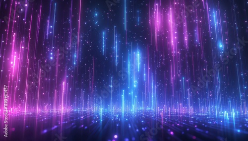 Stunning Abstract Background with Colorful Neon Light Beams Shining Down in a Dark Digital Space, Creating a Futuristic and Energetic Atmosphere