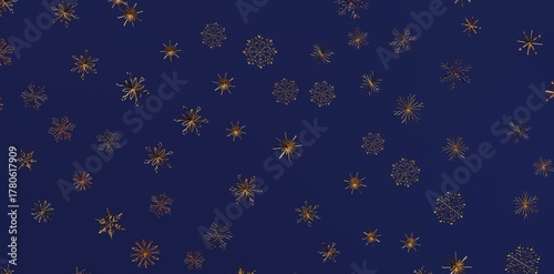 Stunning abstract golden snowflake pattern on a deep blue backdrop perfect for winter holiday designs, Christmas, and festive backgrounds.