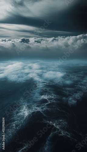 Stunning aerial perspective of dark ocean waters and clouds, evoking an apocalyptic atmosphere