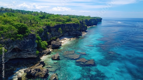 coastline, aerial, view, coral, reef, lush, greenery, rocky, shoreline, turquoise, water, stunning, beach, ocean, landscape, nature, beauty, tropical, scenery, environment, island, paradise, crystal, clear, coastal, cliff, sea, high-coloured, vacation, adventure, travel, biodiversity, ecosystem, wave, marin, sunlight, blue, scenic, relaxation, escape, horizon, natural, habitat, shoreline