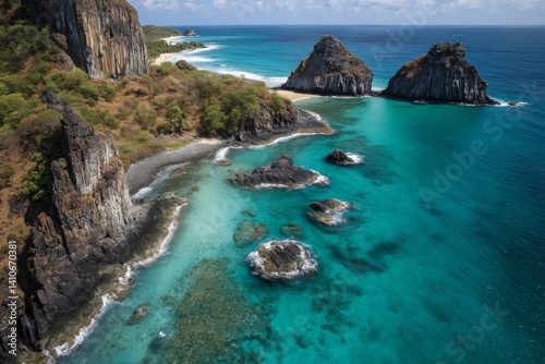 beach, coastline, turquoise, aerial, landscape, rock, ocean, sea, island, tropical, beauty, scenic, bay, nature, water, cliff, shore, paradise, holiday, travel, summer, destination, sun, sky, sand, blue, clear, wave, stone, green, rocky, remote, exotic, adventure, scenery, tour tourism, vibrant, breathtaking, natural, geology, flora, fauna, peaceful, isolated, formation, brazil, archipelago