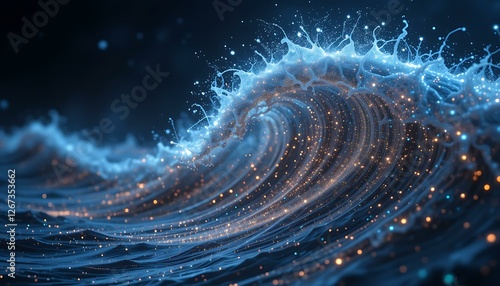 Stunning Blue Wave with Golden Sparkle: Digital Art Wallpaper