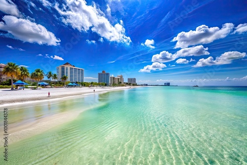 Stunning Clearwater Beach with Soft White Sand and Crystal Clear Water Under Bright Blue Sky