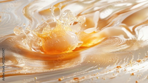 Stunning Closeup of Amber Liquid Splash with Swirling Patterns and Golden Hues