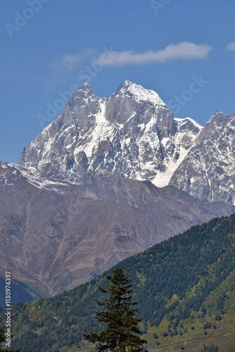 Stunning colourful autumn landscapes in the Northern Georgian Caucasus Mountains around Mestia