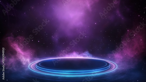 Stunning cosmic background featuring vibrant purple hues and glowing rings, perfect for sci-fi or fantasy themes.