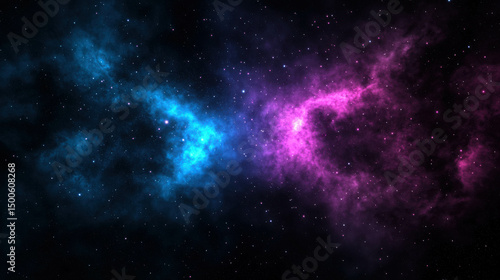Stunning cosmic landscape featuring vibrant blue and pink nebula against a backdrop of shimmering stars and deep space blackness