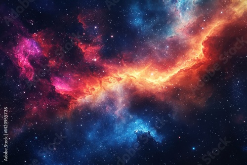 Stunning cosmic nebula with vibrant colors in deep space. Night sky galaxy visuals for astronomy enthusiasts and wallpaper designs. Awe-inspiring universe backdrop for imaginative projects