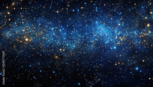 Stunning cosmic panorama showcasing a vast starry sky filled with bright twinkling stars against a deep dark blue background of the universe