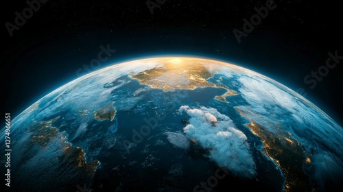 earth, globe, planet, sunrise, sunset, cloud, ocean, continent, space, world map, aerial view, nature, environment, texture, background, hi-res, realistic, geography, landscape, panorama, orb, celestial bodies, cosmology, astronomy, nightlight, city lights, atmosphere, ecosystem, environmental, worldwide, terrestrial
