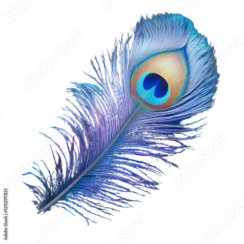 Stunning iridescent blue peacock feather isolated transparent background vibrant colors detailed