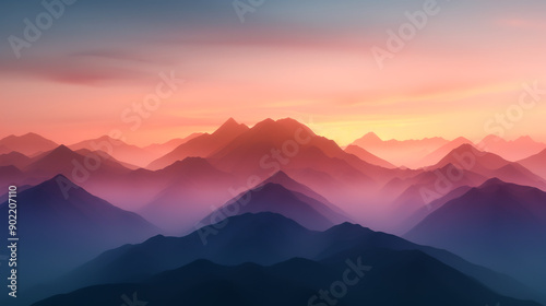 Stunning mountain landscape at sunset with vibrant hues and soft clouds, creating a tranquil atmosphere for nature lovers.
