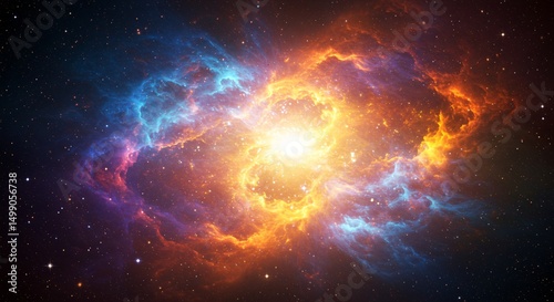 Stunning nebula with a bright center and colorful clouds of gas and dust in deep space