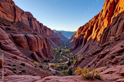 canyon, red rock, sunrise, landscape, nature, vale, mountain, scenery, wilderness, topography, desert, colours, shadow, serenity, travel, adventure, exploration, sky, tree, plant, beauty, light, scene, environment, tranquil, majestic, rugged, panoramic, vibrant, natural, scenic, photo, depth, texture, horizon, formation, peaceful, bright, flora, pattern, earth, unique, view, open space, dramatic, sunlight, dynamic