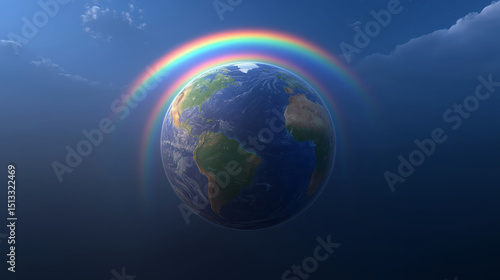 Stunning rendering of Earth with vibrant rainbow arching above, showcasing beauty and wonder