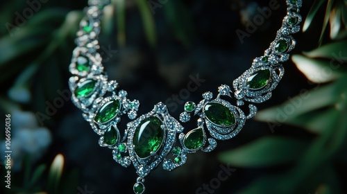 necklace, silver, green, gem, adornment, elegant, sparkling, jewellery, beautiful, luxury, design, costume, fashion, shiny, ornate, gemstone, setting, detail, craftsmanship, radiant, statement, bright, display, artistry, opulence, decoration, visual, accessory, chic, glamourous, precious, style, unique, high-coloured, classic, showpiece, sophisticated, graceful, fashionable, refined, rich, eye-catching, polished, texture, shimmer, hue