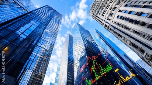 Stunning Skyscrapers Against a Bright Sky Showcasing Modern City Architecture and Stock Market Trends : Generative AI