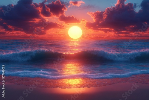 Stunning Sunset Over the Ocean Beach