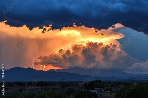 thunderstorm, cloud, lightning, sky, sunset, nature, atmospheric, dramatic, weather, horizon, landscape, mountain, scenery, colourful, high-coloured, rain, storm, overcast, illumination, view, beauty, natural phenomenon, wilderness, energy, majesty, dynamic, impressive, zoom, distant, quiet, silent, calm, peaceful, intense, environment, dusk, colorful sky, shadow, contrast, awe, visual, picturesque, enchantment