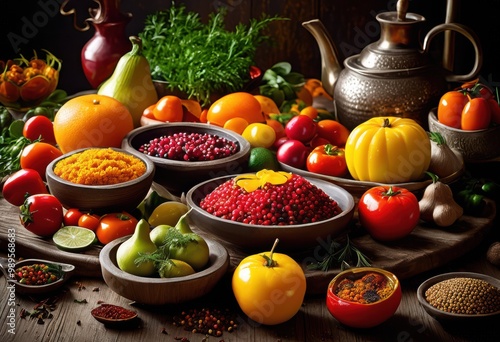 stunning vibrant food highlighting rich textures bright colors culinary enthusiasts, appetizers, buffet, cuisine, dining, dishes, delicious, desserts