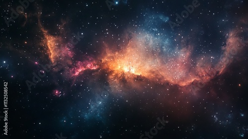 Stunning vibrant nebula in the vast depths of deep space surrounded by twinkling stars, colorful cosmic cloud formation, interstellar gas and dust, majestic astronomical phenomenon in outer galaxy