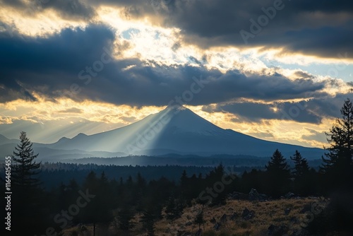 mountain, landscape, nature, cloud, sun, ray, dusk, scenery, tranquil, serene, majestic, peak, sky, dramatic, wilderness, forest, tree, sunset, beauty, peaceful, atmospheric, light, shadow, horizon, travel, adventure, exploration, scenic, vista, panorama, environment, breathtaking, picturesque, idylli, remote, solitude, calm