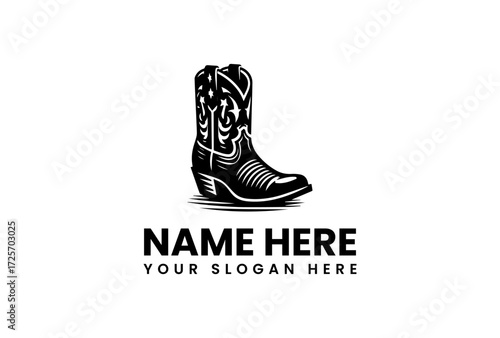 Stylish Black and White Silhouette of a Western Boot.
