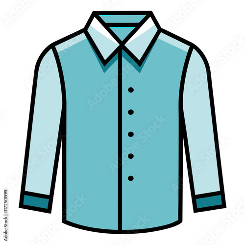 Stylish Blue Long-Sleeve Shirt Illustration, Flat vector illustration of a blue long-sleeve shirt with a white pointed collar and button-up design, outlined for a modern look.