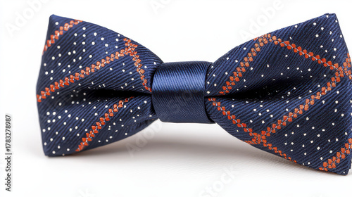 Stylish bow tie featuring navy blue background with red and white patterns, perfect for formal occasions and adding elegance