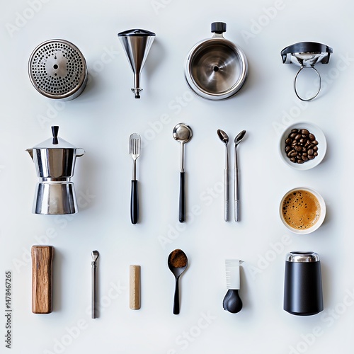 espresso, coffeemaker, kitchen utensile, coffee bean, light background, container, coffeepot