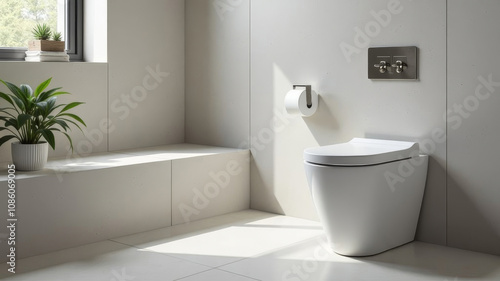 Stylish interior of modern bathroom with toilet bowl