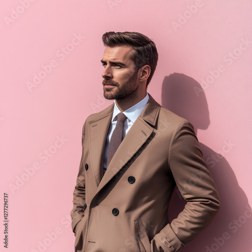 man, fashion, beige, stylish, photo, setting, posing, pose, look, chic, attire, suit, posh, confidence, visual, vogue, impression, charming, personal, inspiration, aesthetic, quality, character, identity, scene