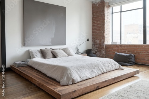 interior, design, bedchamber, platform, bed, textile, cosy, modern, stylish, decor, furniture, lighting, minimalist, comfort, relaxation, luxury, colours, aesthetic, ambience, contemporary, space, home, chic, upscale, material, accessory, warmth, atmosphere, personal, serene, elegance, calmness, creative, storage, arrangement, layout, harmony, retreat, inspiration, soft, nature, plant, artwork, functionality, beauty, dream