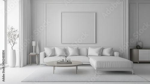 Stylish modern living room, interior design element, detailed sketch, pastel tones, isolated on white background
