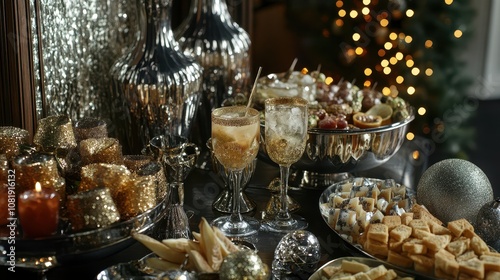 Stylish New Year's Buffet Table Featuring Festive Snacks and Elegant Decor for a Celebratory Atmosphere and Memorable Gatherings
