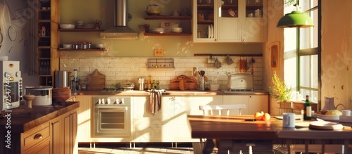Stylish Traditional South Asian Home with Utensils and Wide Window Letting the Spring Warmth and Light in.