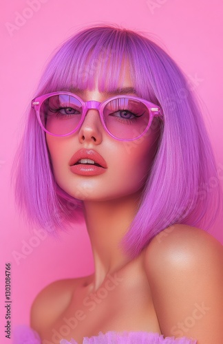 fashion, woman, pink, purple, wig, sunglasses, trendy, stylish, glamour, beauty, portrait, model, pastel, posing, confidence, chic, vibrant, elegance, colourful, modern, aesthetic, feminine, fashionable, allure, photo, expression, attitude, bold, unique, creative, playful, artistic, young, joyful, urban, summer, look, striking, style, contemporary