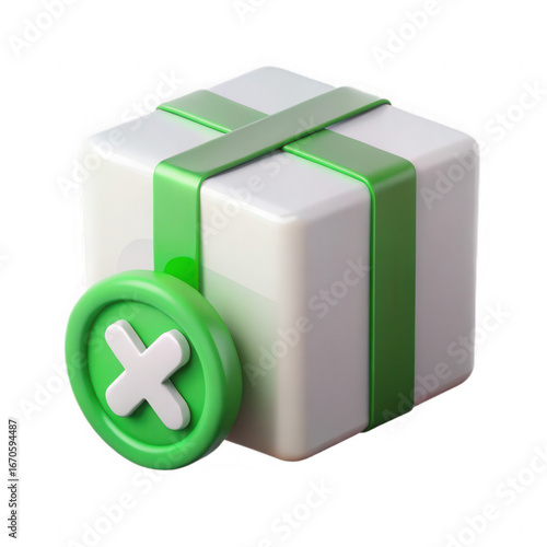 gift, present, box, wrapped, ribbon, green, white, checkmark, cross, icon, symbol, three-dimensional, rendering, illustration, graphic, design, element, isolated, cut-out, object, celebration, holiday, birthday, congratulation, success, approval, correct, positive, confirmation, agreements, choice, selection, option, decision, award, prize, special, occasion, surprise, package, delivery, service, promotion
