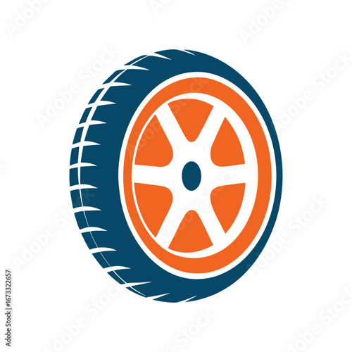 Stylized blue and orange car wheel tire and rim graphic automotive transport