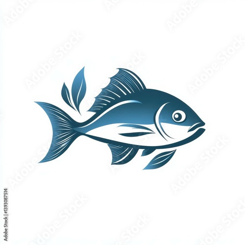 Stylized blue fish illustration with aquatic plants, perfect for marine-themed decor and seafood restaurant branding