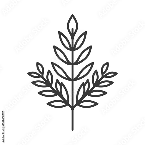 tree branch, leaf, foliage, plant, stem, nature, botanical, twig, greenery, line, outline, simple, design, graphic, minimalist, abstract, elegant, floral, illustration, art, icon, symbol, element, decorative, ornament, pattern, motif, organic, growth, flourishing, germinating, bud, shape, form, black, white, monochrome