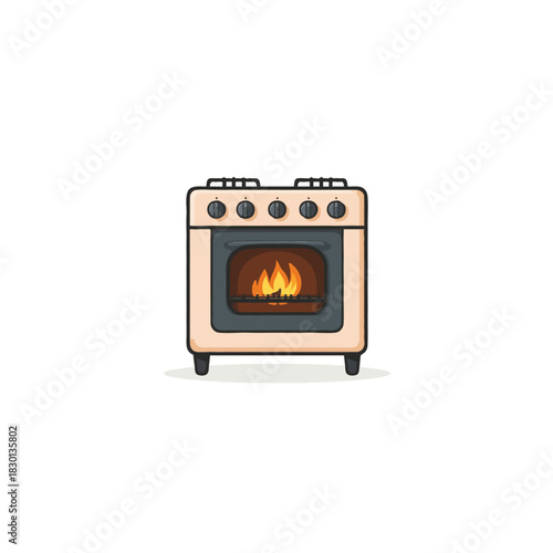 stove, gas, flames, kitchen, cooking, appliance, cartoon, illustration, vintage, retro, burner, heat, equipment, fire, domestic, energy, culinary, household, gastronomy, technology, vector, graphic, design, white, isolated, single, object, drawing, beige, minimalist, home, interior, fuel, combustion, tool, instrument, kitchen utensile, oven, meal