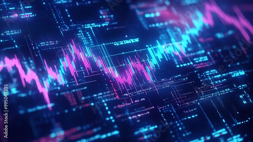 Stylized digital graph with vibrant colors illustrating data trends on a dark background.