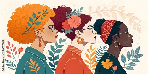 Stylized Diverse Women – Empowering Vector Illustration with Colorful Hairstyles