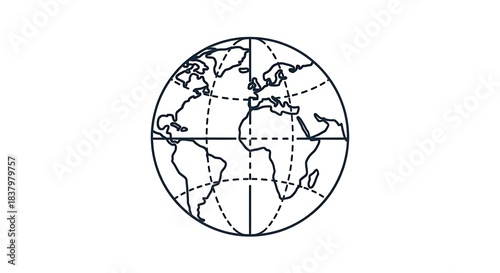 Stylized Globe Illustration Showing Continents and Lines of Latitude and Longitude.