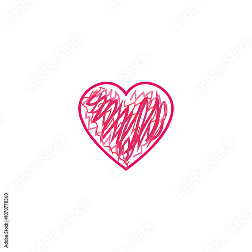 Stylized heart with dynamic red and purple scribbles. The chaotic texture contrasts creates an expressive design. Suitable for Valentine’s Day, abstract love themes, or artistic compositions.