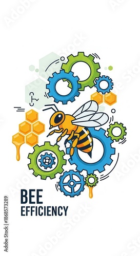 efficiency, automation, development, stripes, stylised, abstract, simple, optimization, industrious, concept, bee, graphic, pollination, blue, orange, yellow, power, beautiful, gear, process, green, machinery, teamwork, system, operation, industry, design, sweet, collective, creation, organisation, work, modern, engineering, honey, structure, insect, wing, production, connection, energy, nature, progress, illustration, mechanism, animal, honeycomb