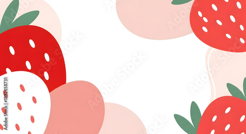 strawberry, fruit, berry, red, pink, white, green, leaf, seed, dot, abstract, shape, illustration, graphic, design, background, border, frame, fresh, sweet, healthy, summer, spring, food, snack, dessert, nature, organic, vibrant, bright, clean, simple, minimalist, modern, cute, playful, cheerful, juicy, delicious, natural, garden, harvest, plant, produce, vegetarian, vegan, vitamin, nourishment, pattern