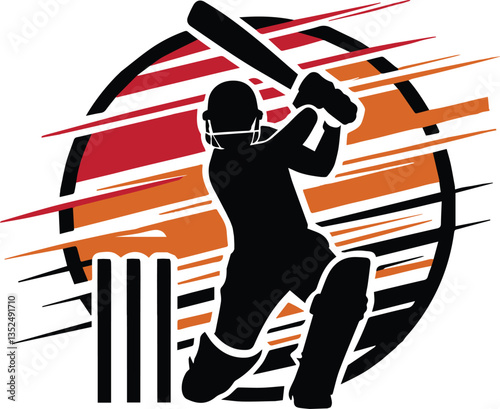 Stylized logo featuring a cricket player cricket logo vector illustration