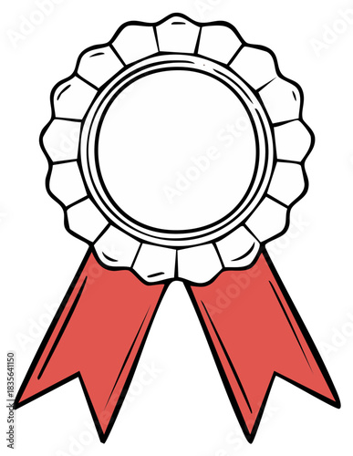 Stylized Red Ribbon Rosette Award Emblem Design with Blank Center